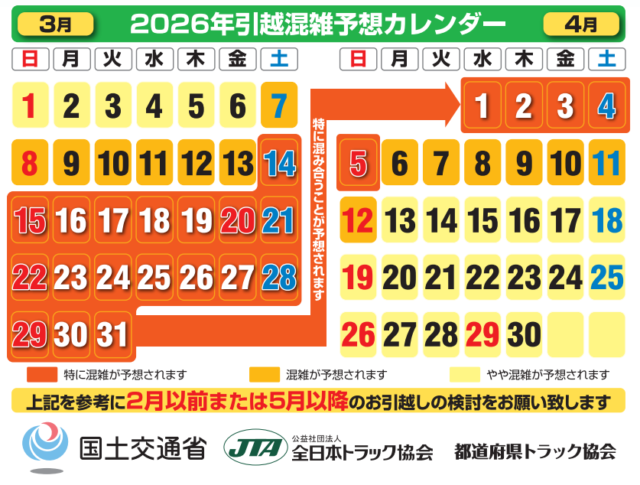 引っ越し作業をスムーズに進めるには、できれば繁忙期を避け、3月前半や4月2週目以降に手続きすることをおすすめします。