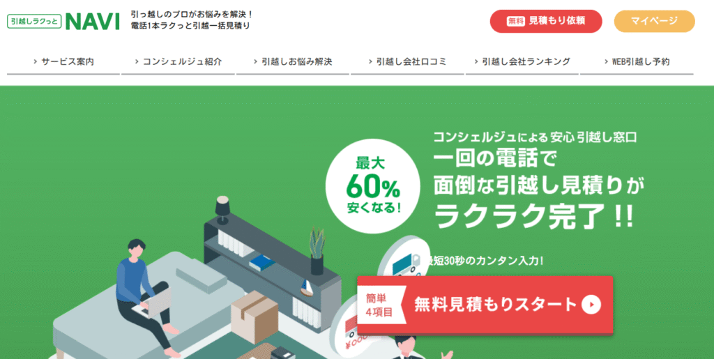 引越しラクっとNAVIは、従来の引越し一括見積もりサービスとは異なる多くのメリットを持つサービスです。
