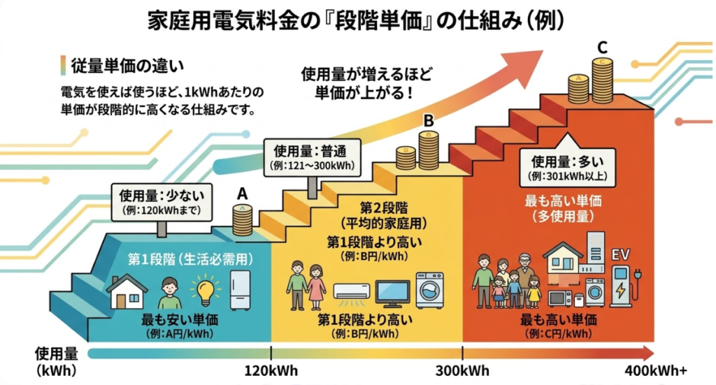 家庭向けの電気は、地域電力会社である 東京電力(東京電力エナジーパートナー) を基準に料金や契約条件が設定されています。