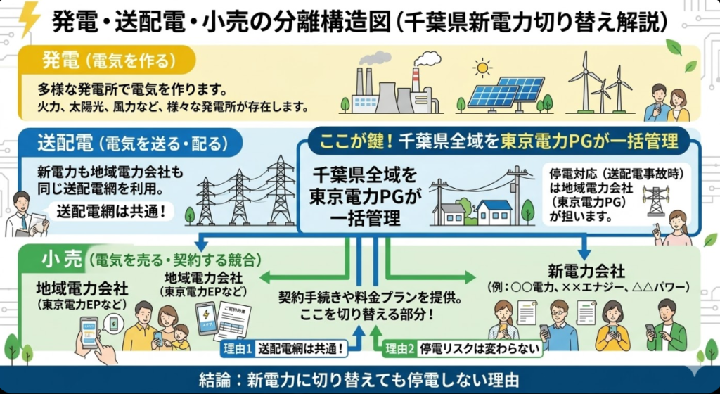 千葉県では、東京電力グループの送配電会社が電力インフラを管理しています。