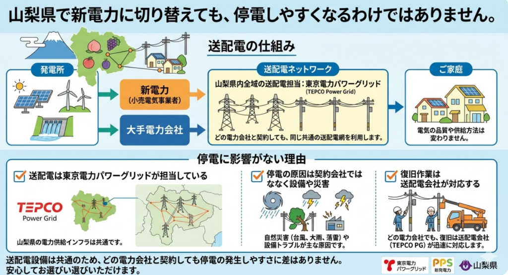 山梨県では送電や配電を東京電力パワーグリッドが担当しています。