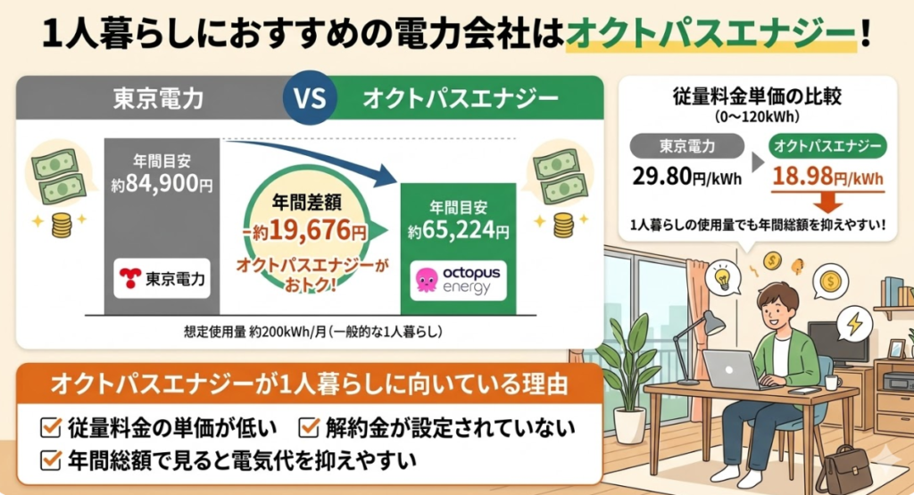 年間総額を最優先に電力会社を選びたい人にとって、オクトパスエナジーは有力な選択肢といえます。