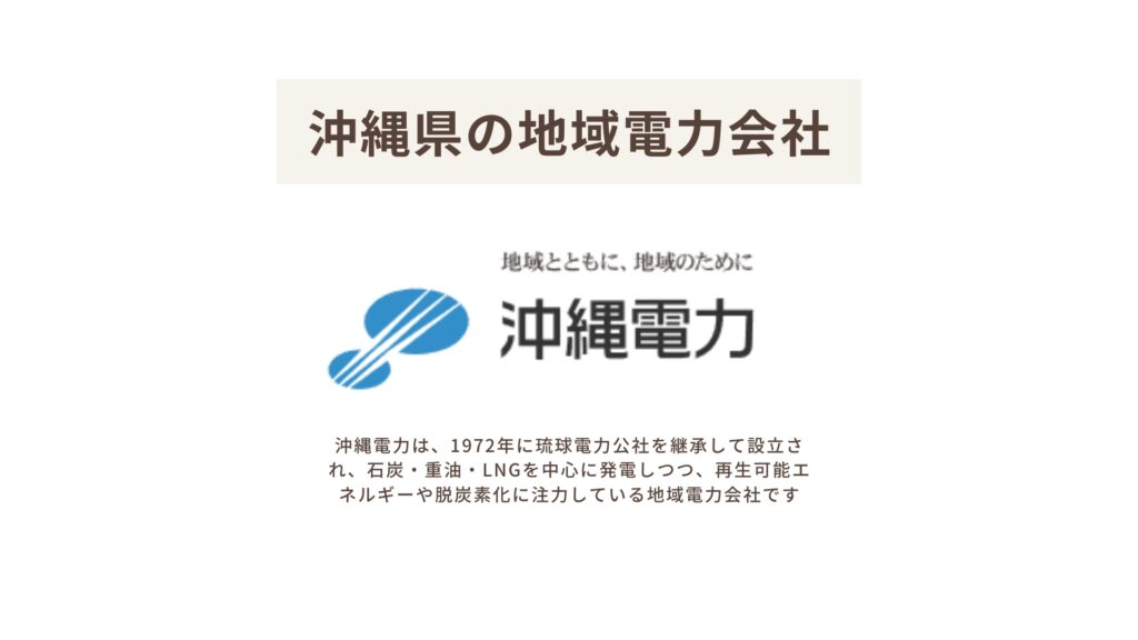 沖縄電力は、1972年に琉球電力公社を継承して設立され、石炭・重油・LNGを中心に発電しつつ、再生可能エネルギーや脱炭素化に注力している地域電力会社です。