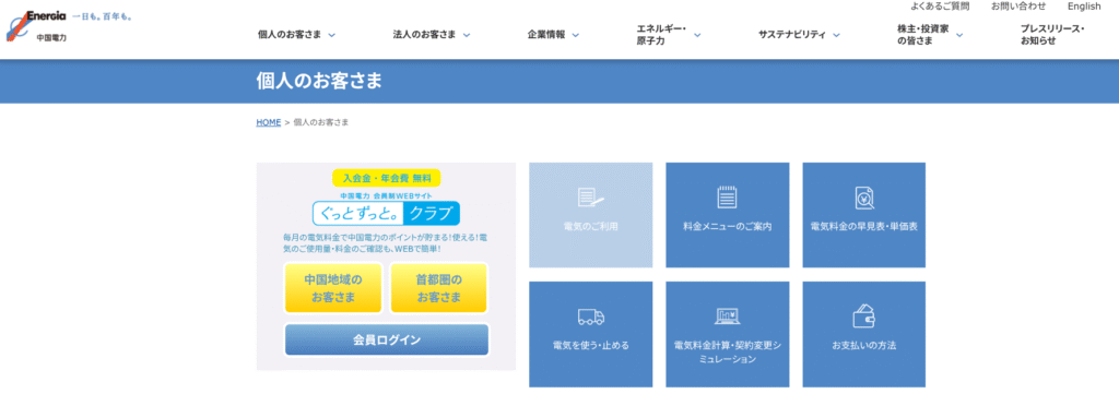 一番に出てきた中国電力の公式ページをクリックしましょう。