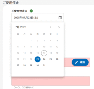 解約時には電気使用停止の希望日を設定しますが、一般的に、引っ越し当日を停止日に指定することが多いです。