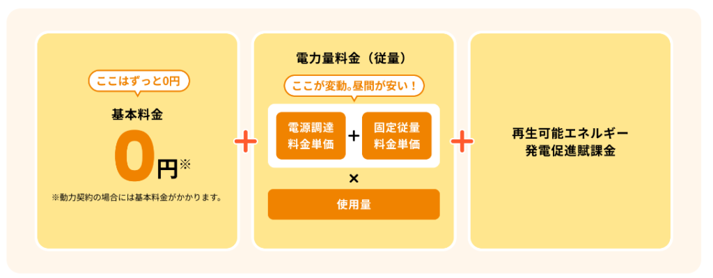 リミックスでんきは、基本料金が0円で電気を使った分だけ支払うシンプルな従量課金制を採用しています。