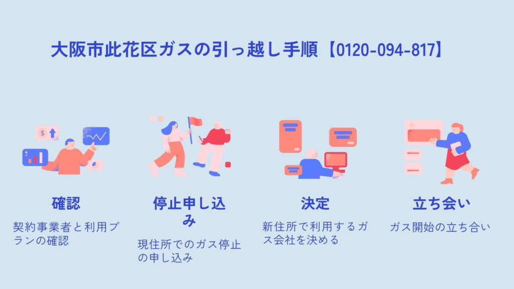 そこで、以下では大阪ガスを例に、ガスの引っ越し手続きについて手順ごとに解説していきます。