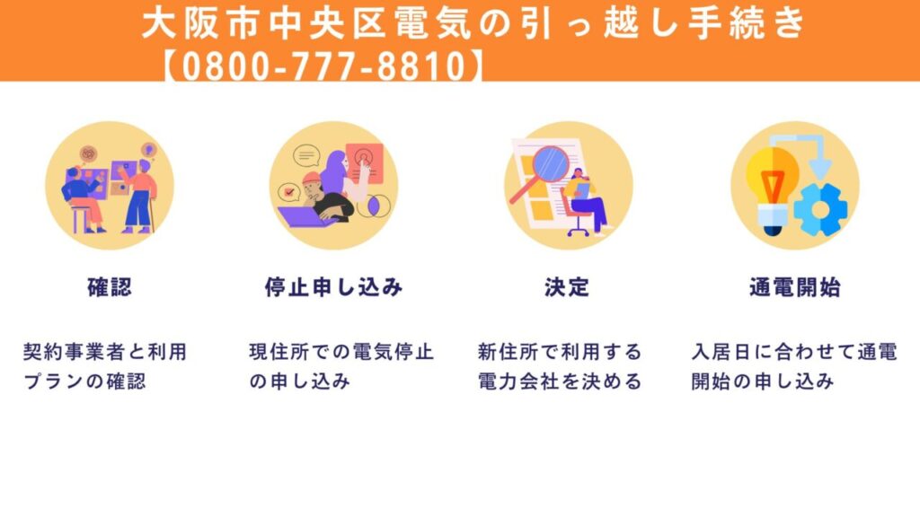大阪市中央区電気の引っ越し手続き【0800-777-8810】