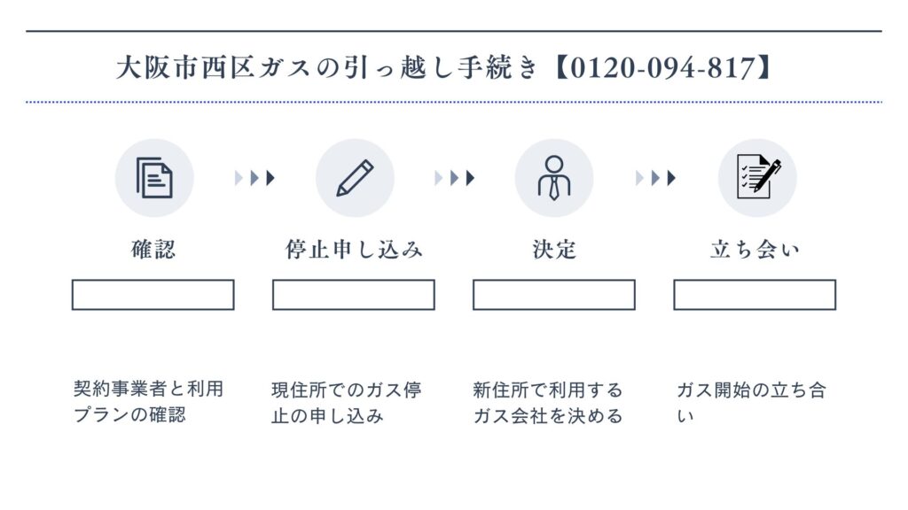 以下では、大阪ガスを例に、ガスの引っ越し手続きの流れを順を追って解説します。