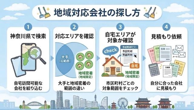 横浜・川崎を中心に地域密着で展開する会社から、神奈川県全域をカバーする会社まで、対応エリアや得意な清掃内容はそれぞれ異なります。