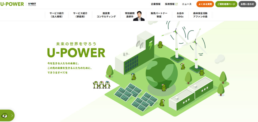 | 一言特徴 | 実質再生可能エネルギー100%の電気を提供する | 市場連動型で安い | 全国対応で使いやすい | ファミリー向けでお得 |