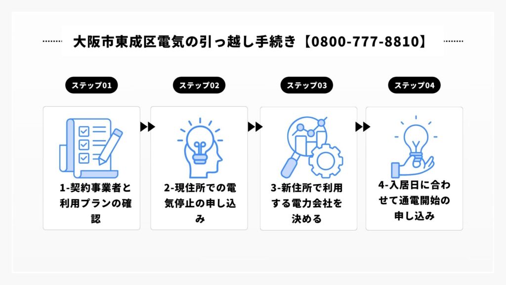 大阪市東成区電気の引っ越し手続き【0800-777-8810】