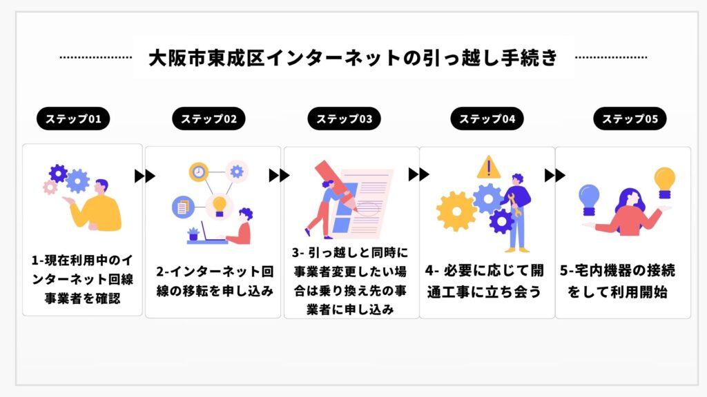 交通の便やグルメが魅力の東成区への引っ越しをスムーズに進めるためには、電気・ガス・インターネット・水道などのライフラインの手続きを事前に済ませる必要があります。