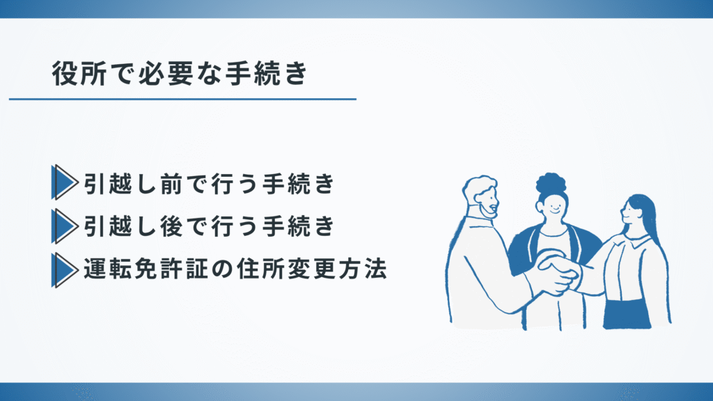 以下では、引っ越しの際に区役所で必要となる手続き内容を解説します。