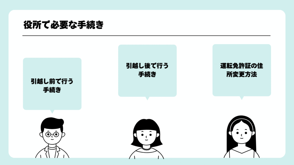 以下では、引っ越しの際に区役所で必要となる手続き内容を解説します。