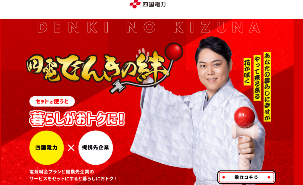 四国電力では、提携しているガス会社から四国電力とセットで契約することで、料金がお得になる仕組みがあります(四電でんきの絆)。