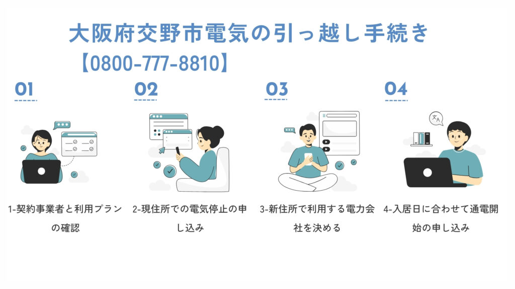 次に、利用者の多い関西電力を例に、電気の引っ越し手続きの流れを詳しくご紹介します。