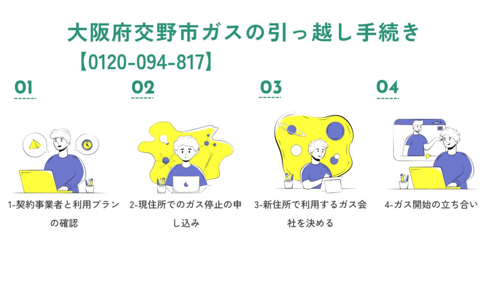 そこで、以下では大阪ガスを例に、ガスの引っ越し手続きについて手順ごとに解説していきます。