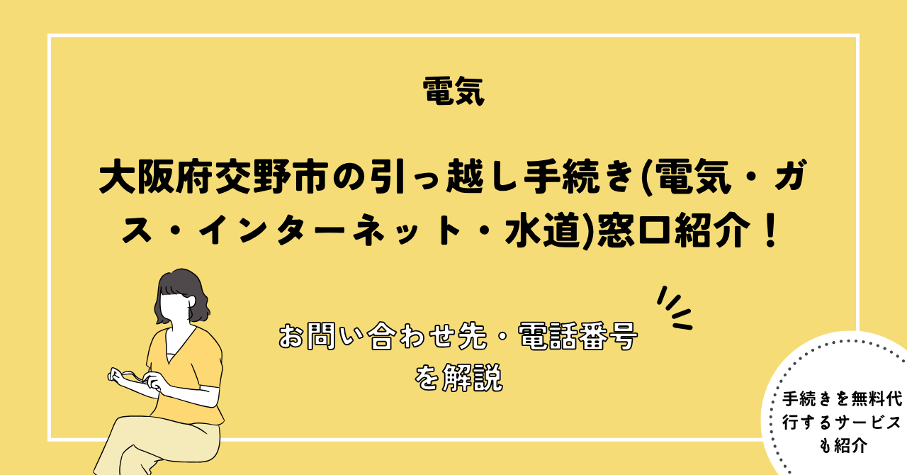 大阪府交野市の引っ越し手続き(電気・ガス・水道・インターネット)連絡先まとめ