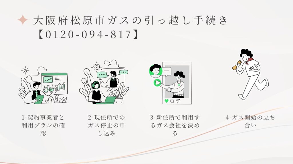 大阪府松原市で都市ガスをご利用の方は、多くが大阪ガスを使用しているため、以下では大阪ガスの引っ越し手続きを手順ごとに解説していきます。