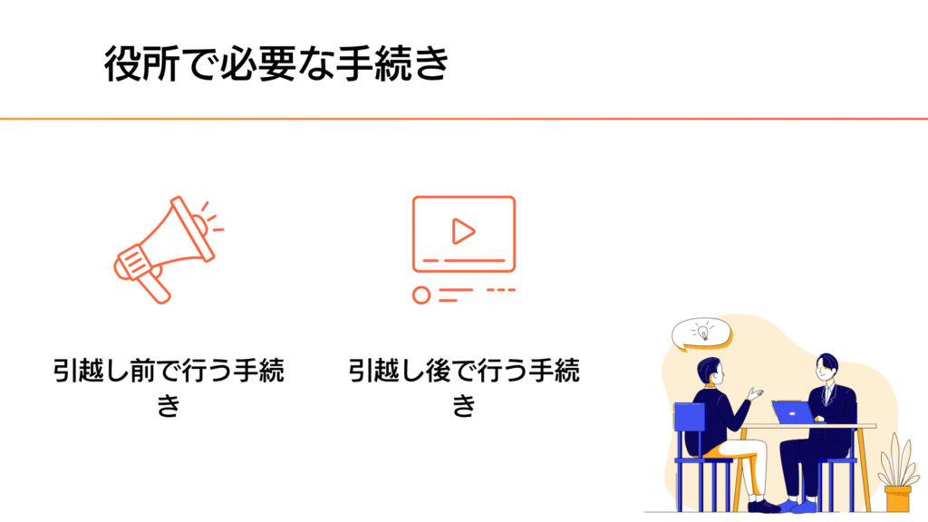 以下では、引っ越しの市役所で必要となる手続き内容を解説します。