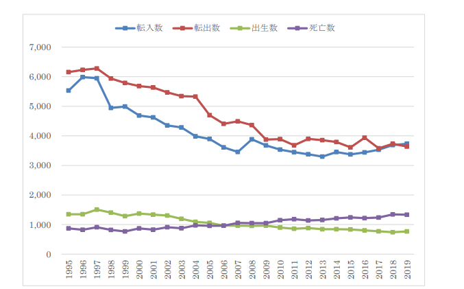 令和6年の転入者数は4,497人、転出者数3,920人で、若年層の流入超過が続いています。
