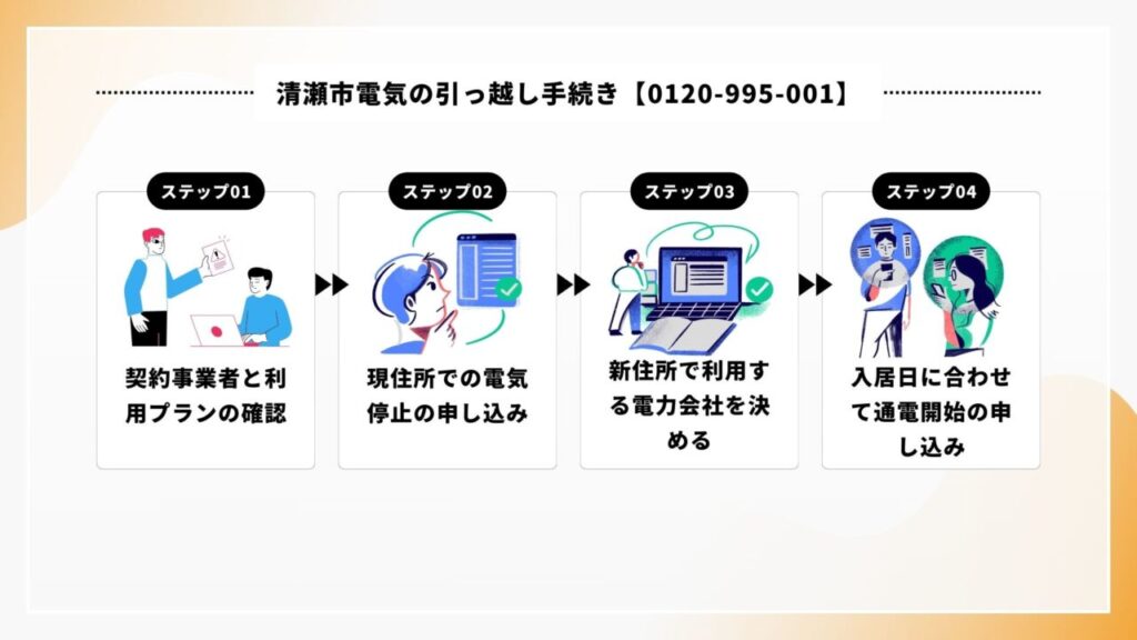 以下では利用数の多い東京電力を例に、電気の引っ越し手続きの手順を解説します。