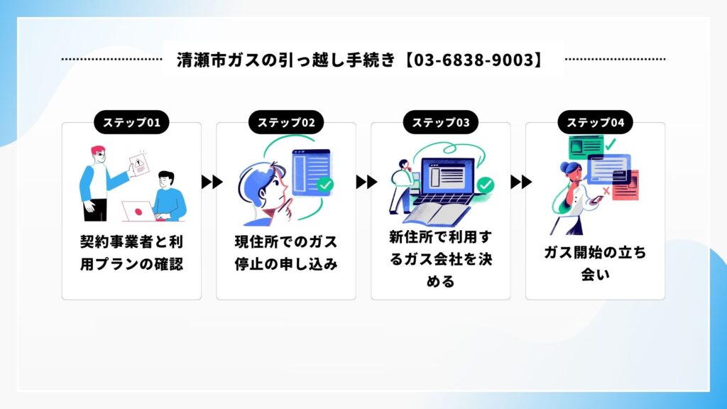 そこで、以下では東京ガスを例に、ガスの引っ越し手続きについて手順ごとに解説していきます。