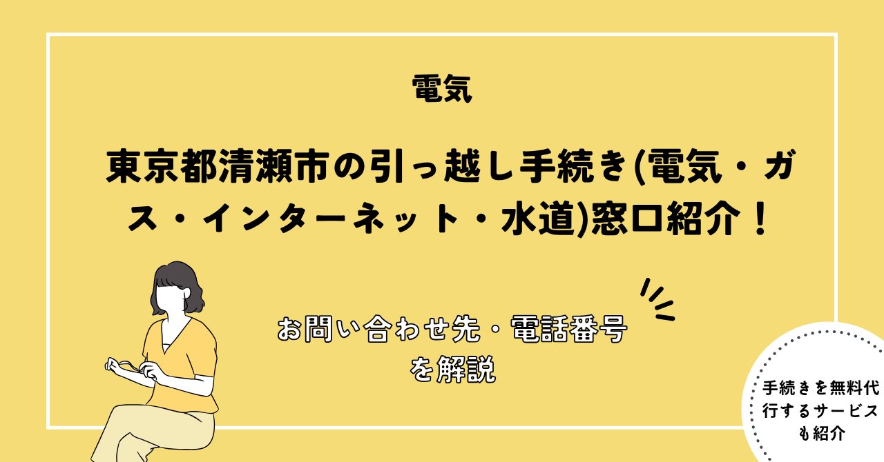 東京都清瀬市の引っ越し手続き(電気・ガス・水道・インターネット)連絡先まとめ