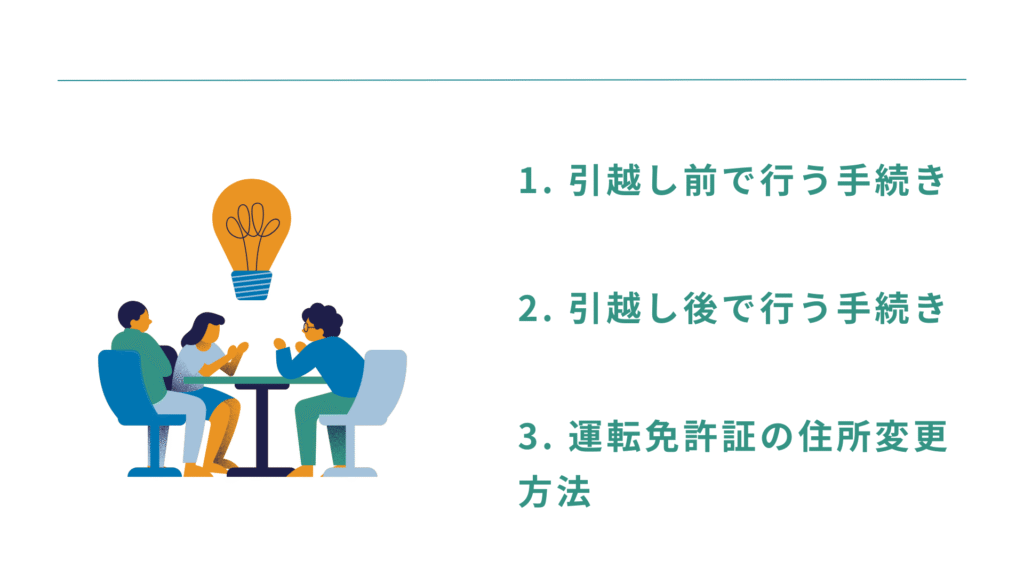 住所変更手続きの際は、住所変更済みのマイナンバーカードと免許証を持っていきましょう。
