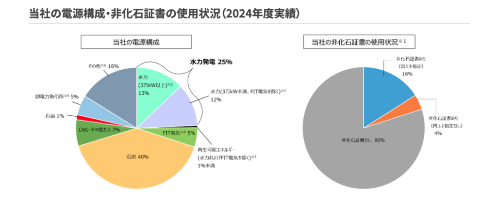 引用元:北陸電力当社の電源構成・非化石証書の使用状況(2024年度実績)