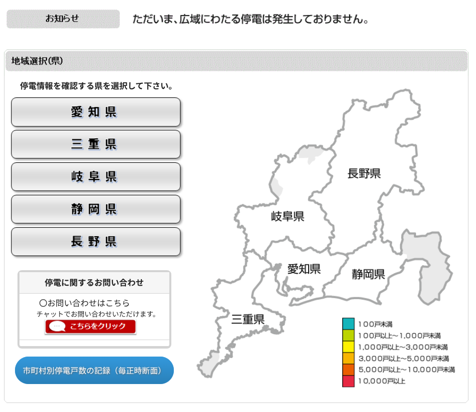 中部電力の停電に関する情報は、中部電力パワーグリッドのサイト「停電に関する情報」でも確認することができます。