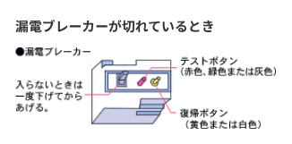| 漏電ブレーカー | 漏電の発生や電気配線のショートなどが原因で落ちる |