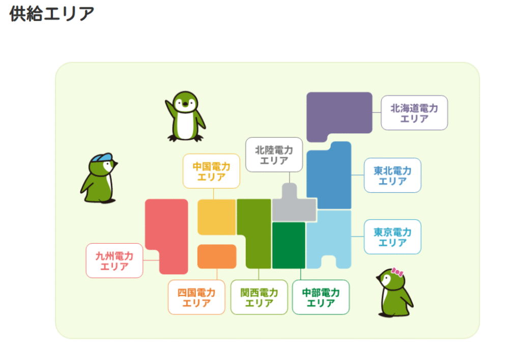 | 供給エリア | 北海道電力エリア・東北電力エリア・東京電力エリア・中部電力エリア・北陸電力エリア・関西電力エリア・中国電力エリア・四国電力エリア・九州電力エリア |