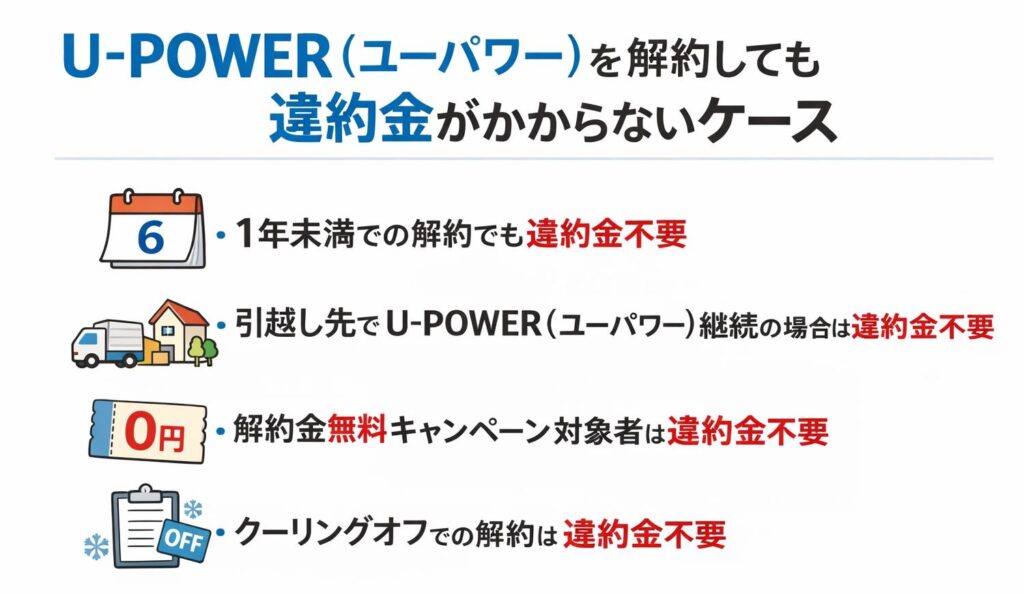 U-POWER(ユーパワー)を解約しても間違い約金がかからないケース