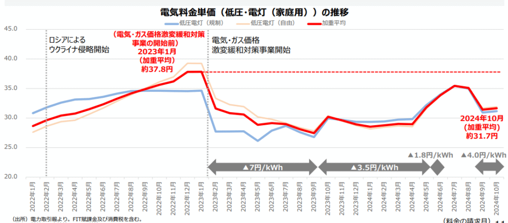 電気代は、近年ロシアのウクライナ侵略等による燃料輸入価格の高騰に伴い、2022年以降上昇傾向にあります。