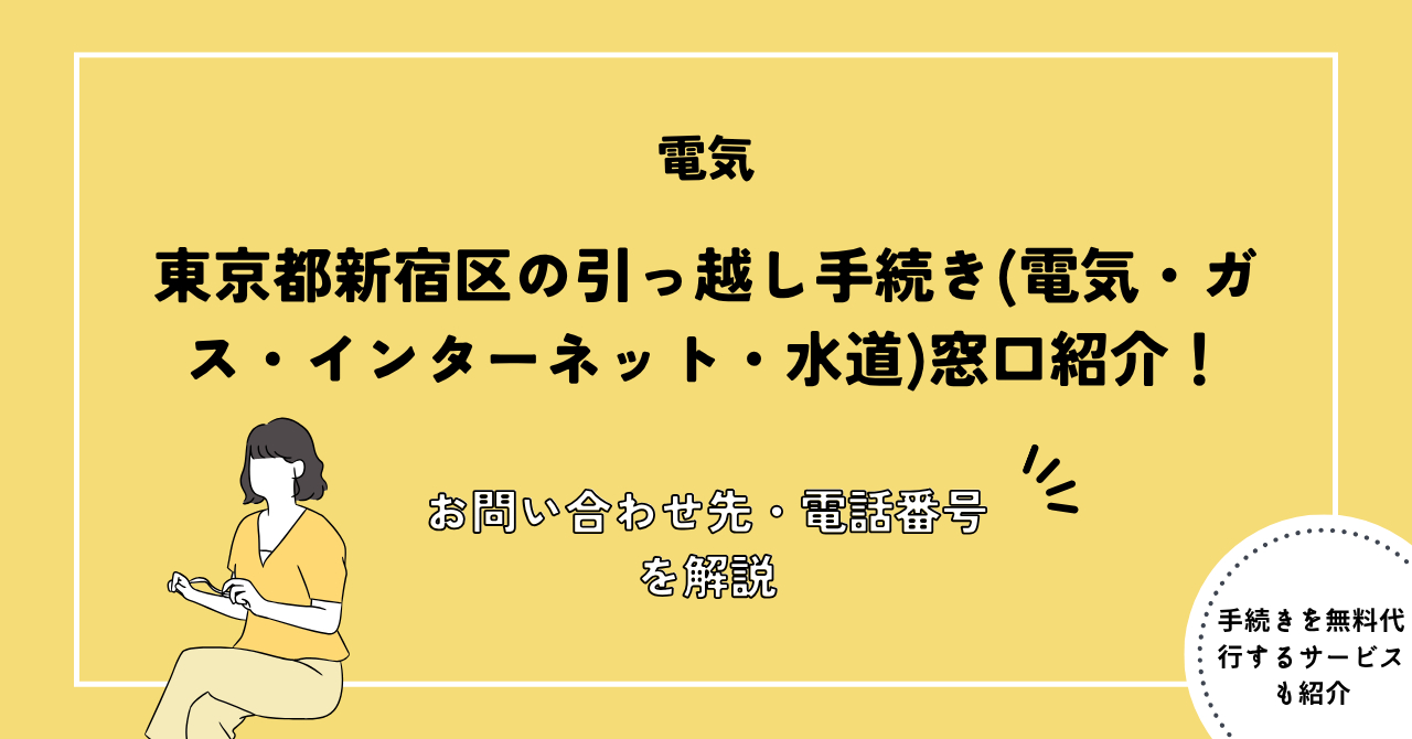 本記事では、東京都新宿区での引っ越し手続きをスムーズに進められるよう、電気、ガス、水道、ネットなどのライフラインの問い合わせ窓口や引っ越し手続きの流れをまとめています。