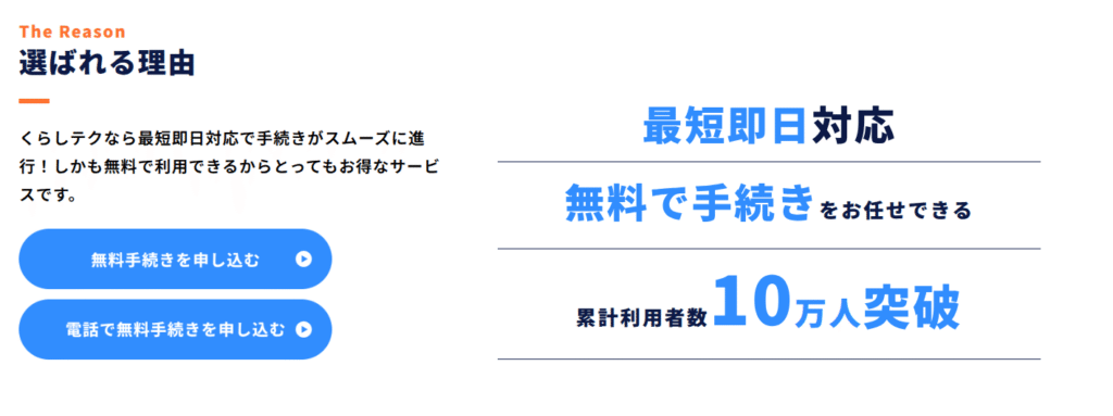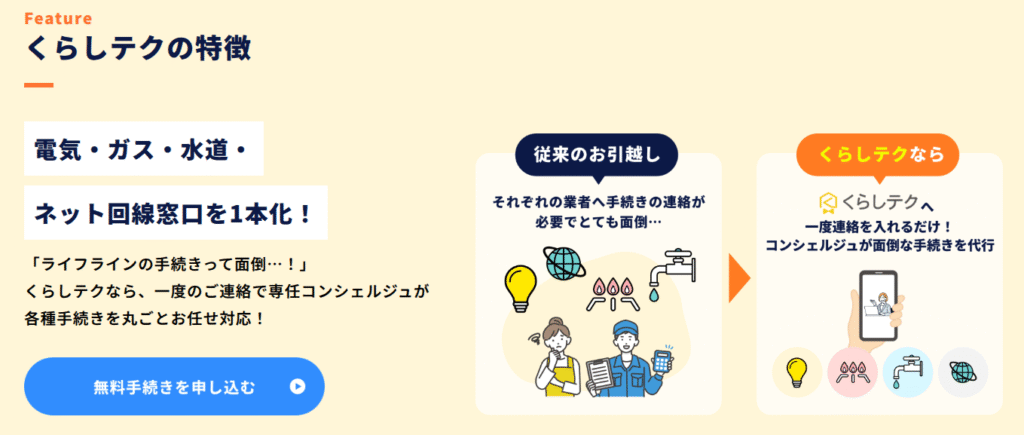 くらしテクは、引っ越しに関する様々な手続きを無料で代行しています。