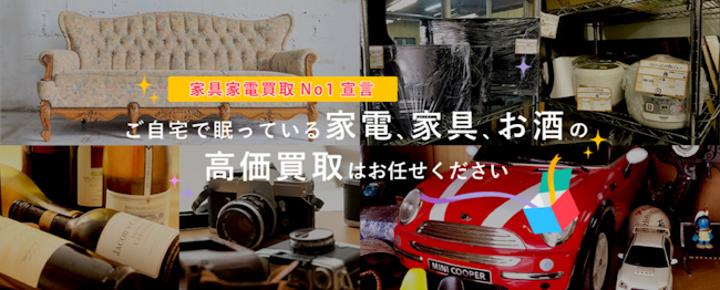 また、買い取る商品は家電製品や家具をはじめとし、ブランド品や自転車、骨董品なども対象となります。