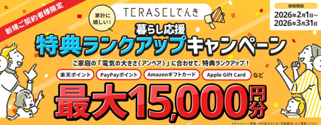 また、ポイント還元や新規契約キャンペーン等の特典を設けていることもあり、お得なプラント組み合わせることでさらに電気料金の負担が軽減されるでしょう。