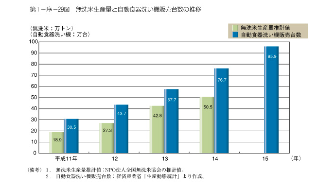 平成16年版の男女共同参画白書では自動食器洗い機が徐々に販売台数を伸ばしている結果が報告されています。