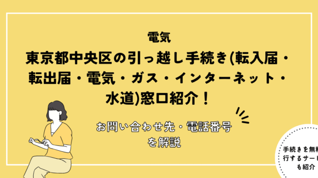 東京の引っ越し 東京都中央区の引っ越し手続き(転入届・転出届・電気・ガス・インターネット・水道)窓口紹介!お問い合わせ先・電話番号を解説 2025年10月6日 seo_kurashitech くらしテク|【電気・ガス】くらしのお役立ちコラム
