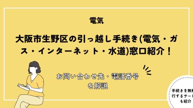 引っ越し 大阪市生野区の引っ越し手続き(電気・ガス・インターネット・水道)窓口紹介!お問い合わせ先・電話番号を解説 2025年10月10日 kurashiteku くらしテク|【電気・ガス】くらしのお役立ちコラム