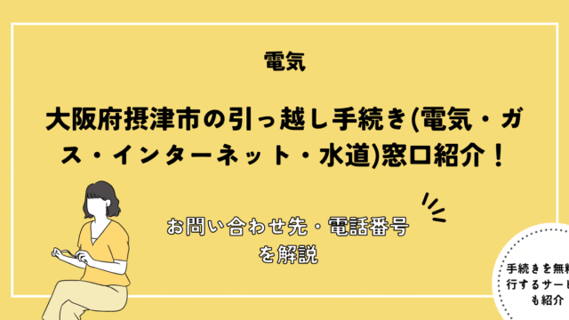 大阪の引っ越し 大阪府摂津市の引っ越し手続き(転入届・転出届・電気・ガス・インターネット・水道)窓口紹介!お問い合わせ先・電話番号を解説 2025年10月16日 kurashiteku くらしテク|【電気・ガス】くらしのお役立ちコラム