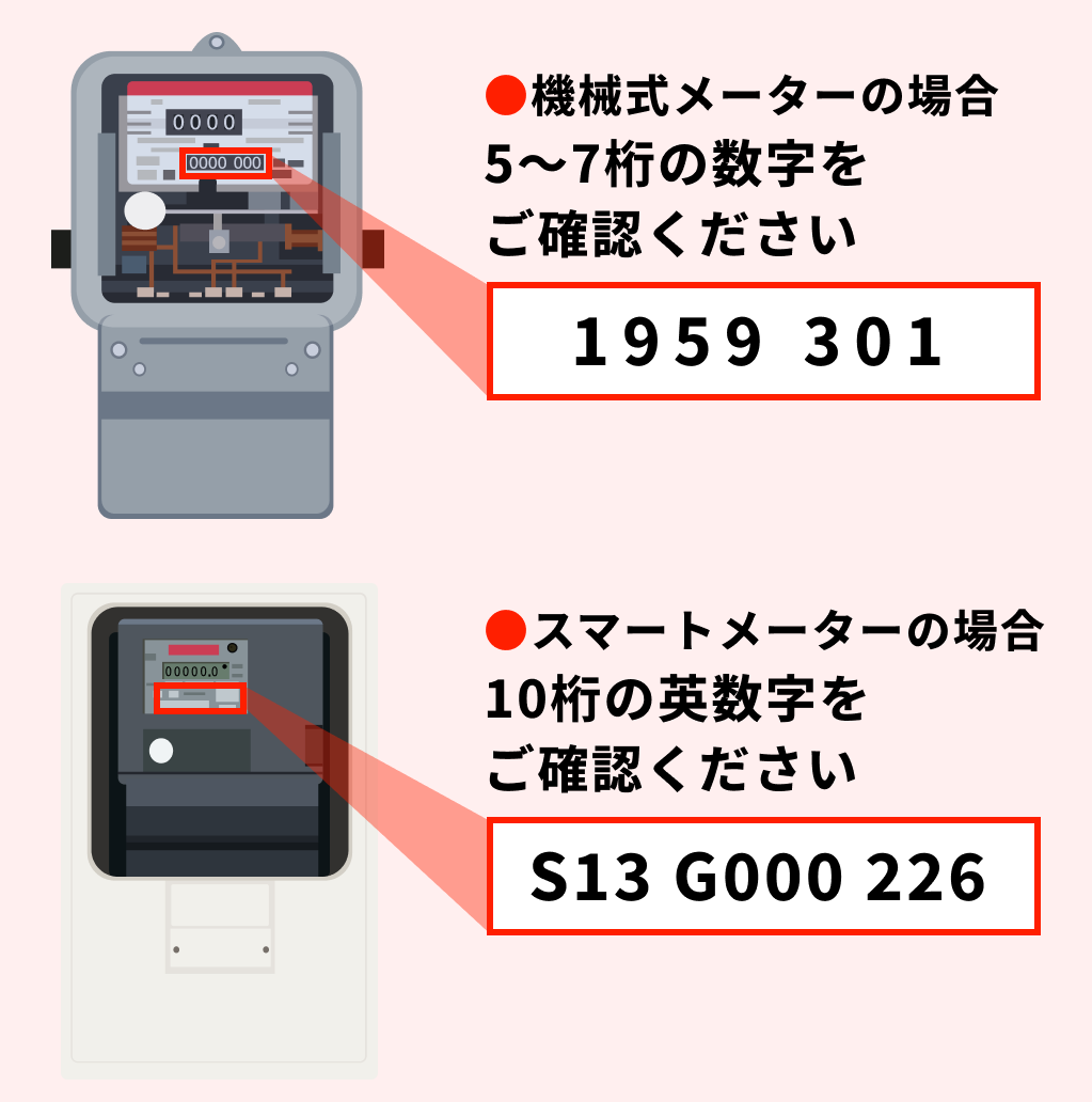 ※計器番号や供給地点番号が不明な場合は、一度お問い合わせください。