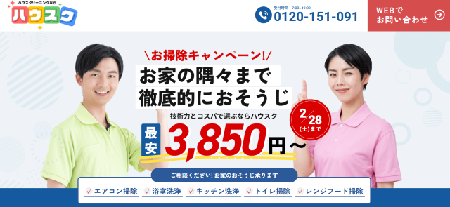 ハウスクは大阪のハウスクリーニング業者のなかで、コスパの良さ・丁寧さ・安心感から人気のサービスです。